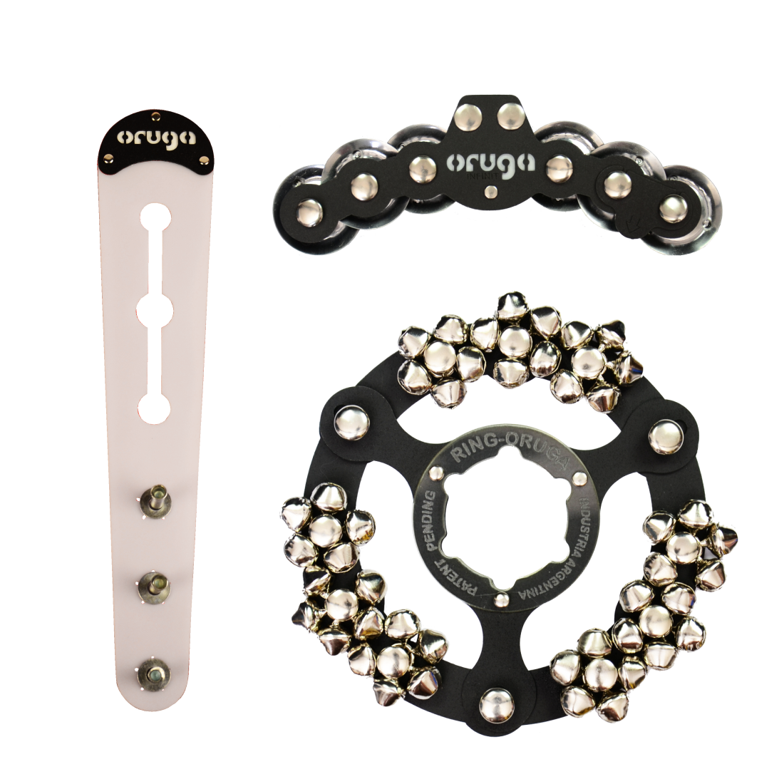 El Small Oruga ofrece texturas sutiles y artesanales que realzan los parches de batería, preservando su tono natural. Su sistema de sonajas flotante se monta magnéticamente en aros de acero estándar o en un soporte para platillos/hi-hats con el adaptador incluido; no requiere herramientas ni ajustes.